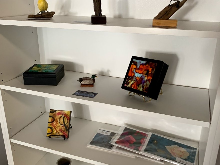 There are lots of pieces of artwork hung on the walls that are for sale and many other items in bins and shelving. It's nice to just go and look around inside and easy to find a gift for someone! Also, the items here are done by local artists, which is a plus to me. I like to shop local when I can.